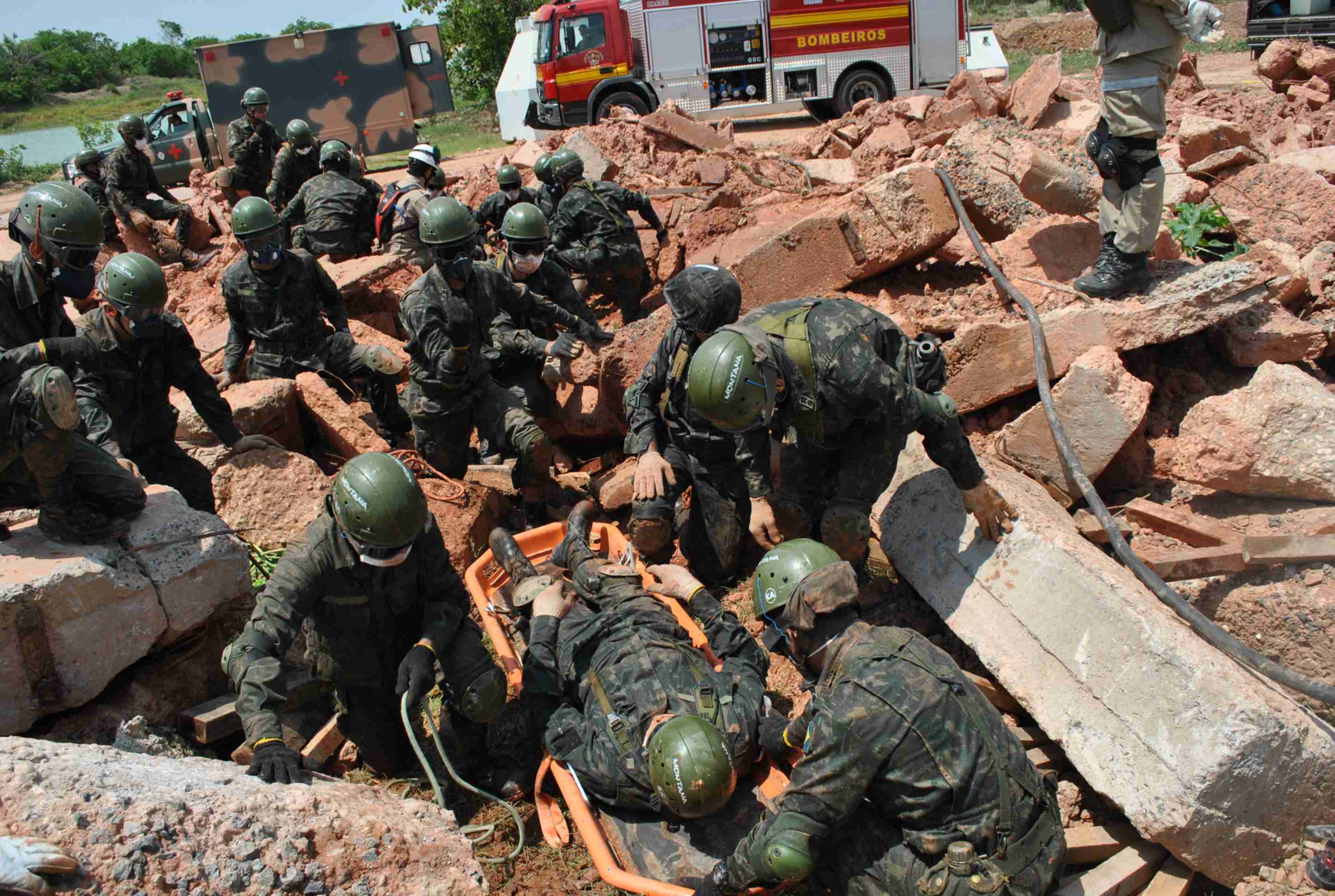 Membros do 3º Grupamento de Bombeiros Militar, sediado em Imperatriz, ministraram curso de Instruções de Busca e Resgate em Estruturas Colapsadas (BREC) para o 20º Contingente do Exército Brasileiro que irá compor as tropas no Haiti, na missão Minustah.