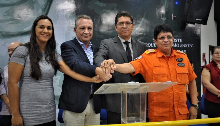 Na manhã desta quinta-feira (16), o Comandante Geral do Corpo de Bombeiros Militar do Maranhão, coronel Célio Roberto, participou da solenidade de assinatura do Termo de Cooperação Técnica, entre a Prefeitura de São José de Ribamar e o Corpo de Bombeiros Militar do Maranhão.
