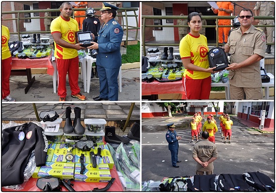 Os materiais adquiridos pelo Corpo de Bombeiros foram destinados às operações de mergulho de resgate, e serão empregados pelo Batalhão de Bombeiros Marítimo – BBMAR, em suas operações em todo o Estado. A aquisição ocorreu por meio do Ministério Público do Trabalho através de Termo de Ajustamento de Conduta, na pessoa da procuradora do Trabalho da 16ª região, Drª. Anya Gadelha Diógenes. Entre os materiais adquiridos destacam-se: facas de mergulho k-2, Lanternas de mergulho, 01 (um) kit de comunicação de mergulho, composto por máscaras “full face” e uma base de comunicação entre mergulhador e superfície, snorkel, nadadeiras, botas de mergulho e roupas de neoprene. Todo esse material tem como finalidade aumentar a efetividade dos resgates em meio aquático e melhorar o tempo resposta no socorro às vítimas que dependam das atividades de mergulho.