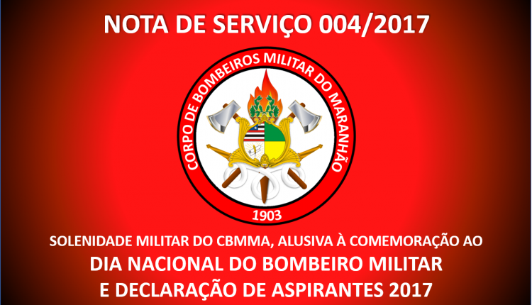 024/2017: Nota de serviço: Dia Nacional do Bombeiro Militar e Declaração de Aspirantes 2017. AVISOS Por ASCOM Atualizado em 3 de abril de 2018 Compartilhar