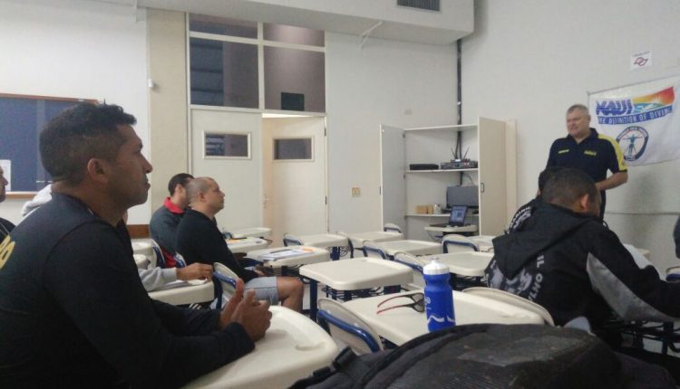 O Subtenente Francis e o Sargento Carlos Silva, combatentes do Corpo de Bombeiros Militar do Maranhão, estão representando a corporação no curso de INSTRUTOR DE MERGULHO DE SEGURANÇA PÚBLICA pela NAUI – National Association of Underwater Instructors em Jundiaí-SP. O curso também conta com a participação de membros da Polícia Federal, mergulhadores da Marinha e comandantes de unidades operacionais do CBMs do Paraná e Minas Gerais.