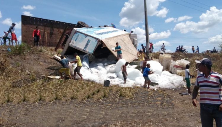 O caminhão estava carregado com barras de gelo.