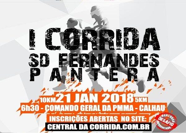 Participe da I CORRIDA SD FERNANDES O PANTERA que ocorrerá no dia 21 de janeiro, evento em que a Polícia Militar e o Instituto Sd Fernandes homenagearão os Policiais mortos em combate. Com percurso diferenciado de 5 e 10 km, premiação nas faixas etárias e categorias, concentração as 6h30 saindo as 7h00 do Quartel do Comando Geral em direção à avenida Litorânea, cada participante receberá medalha de participação e um kit.