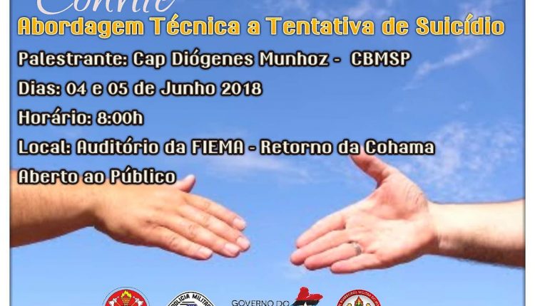 Nos dias 04 e 05 de Junho, o Capitão Diógenes Munhoz, do Corpo de Bombeiros Militar de São Paulo, realizará uma palestra com o tema: “Abordagem Técnica à Tentativa de Suicídio”. O evento será aberto ao público, e acontecerá a partir das 8:00h no Auditório da FIEMA, localizado no retorno da Cohama.