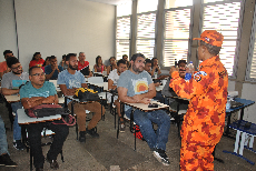 Durante a primeira etapa, os alunos aprenderam procedimentos básicos para saberem identificar o tipo de extintor mais adequado para um princípio de incêndio elétrico e a classificação de botijões de gás utilizados em casos domésticos e empresariais.