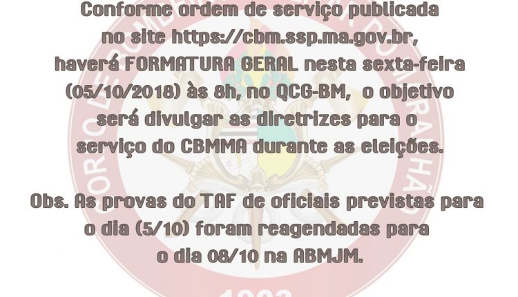 139/2018 AVISO DE FORMATURA GERAL AVISOS Por admcbmma01 Publicado em 4 de outubro de 2018 Compartilhar