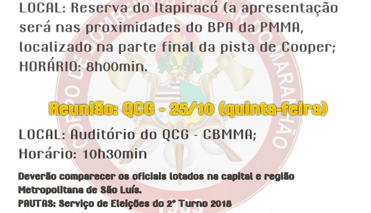 AVISO SOBRE TFM E REUNIÃO DE OFICIAIS Noticias Por ASCOM Publicado em 24 de outubro de 2018 Compartilhar