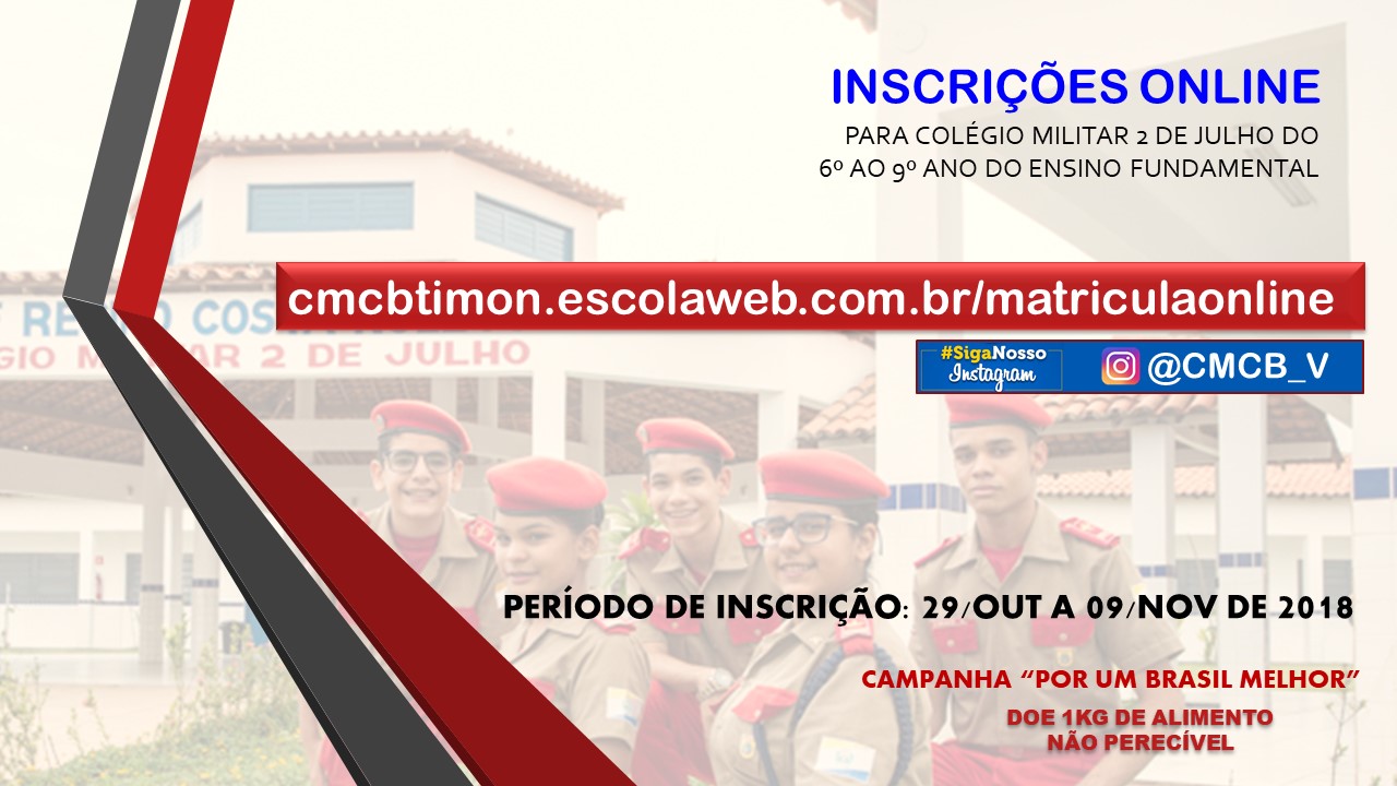 Link Para Inscrição do Colégio Militar 2 de Julho – TIMON Noticias Por ASCOM Publicado em 31 de outubro de 2018 Compartilhar