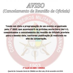 178/2018 Cancelamento de Reunião com os oficiais AVISOS Por ASCOM Publicado em 28 de novembro de 2018 Compartilhar