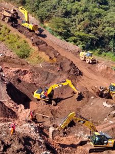 Com a lama compactada, os trabalhos de escavação são desenvolvidos por máquinas pesadas como escavadeiras e pás. Equipes de bombeiros dão suporte na extração de corpos e na triagem da lama, objetivando encontrar vestígios que possam indicar os locais com maior probabilidade de concentração de vítimas.