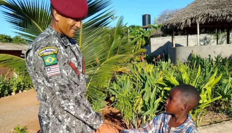 “Fizemos um trabalho voluntário com crianças carentes da cidade de Pemba, em Cabo Delgado. Nos reunimos com a criançada e resolvemos alegrar um pouco aquelas pessoas sofridas pela tragédia. Imitamos palhaços e promovemos brincadeiras simples, demos muitas gargalhadas e nos sentimos muito bem em estar ali, naquele momento”, disse o subtenente Jorge Henrique, bombeiro Militar do MA.