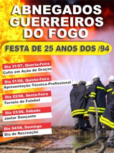 A Comissão Organizadora da Turma de 1994 informa a programação oficial do evento referente às comemorações dos 25 anos de serviço dos militares.