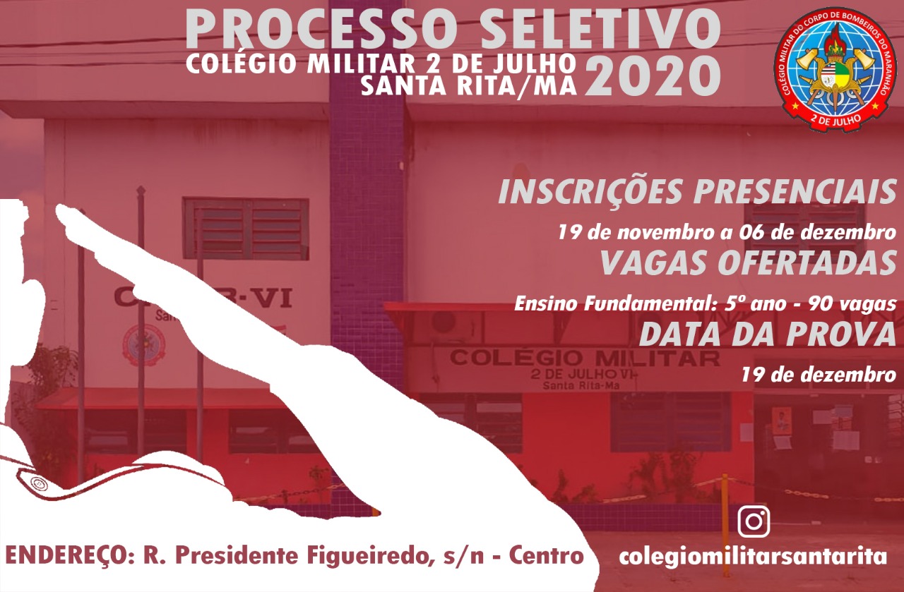 Edital do Colégio Militar 2 de Julho – Unidade VI (Santa Rita) Noticias Por admcbmma01 Atualizado em 21 de novembro de 2019 Compartilhar Arquivos File Date added File size Downloads Edital Santa Rita 1 de novembro de 2019 1:48 pm 2 MB 660