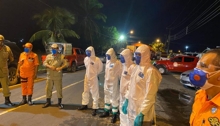 Durante o trabalho, os militares utilizaram um macacão descartável e todos os EPI’s necessários. Para aplicação do produto, foram empregadas viaturas e bombas costais de pulverização com a solução desinfectante contendo água e hipoclorito de Sódio.