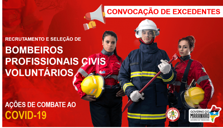 O Comandante Geral do Corpo de Bombeiros Militar do Maranhão (CBMMA), torna público que, no período de 03 e 04 de maio 2020, encontram-se abertas as inscrições para a seleção e recrutamento de 200 Bombeiros Profissionais Civis, para prestação de serviço voluntário, sem nenhum vínculo empregatício com o CBMMA ou com ente público Estadual, conforme diretrizes estabelecidas através da Portaria 016/2020-GABINETE DO COMANDO/CBMMA de 2 de maio de 2020 (anexo no fim desta página) e no Decreto Estadual 35.783 de 2 de maio de 2020.