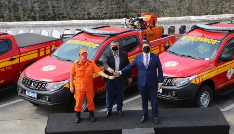 Na manhã desta quinta feira 24.09, o Governador Flavio Dino e o Secretário de Estado da Segurança Publica Jefferson Portela entregaram para o Corpo de Bombeiros Militar do Maranhão, na pessoa do Cel Célio Roberto, 12 viaturas tipo caminhonete com kits de combate a incêndio (motor 2 tempos, reservatório de 500 litros de água e mangote de combate a incêndio), as viaturas serão distribuídas de forma estratégica em todo o Estado, visando combater incêndios em vegetação e incêndios florestais, essa é mais uma ação do Governo do Estado que fortalece a campanha Maranhão Sem Queimadas que tem como objetivo a prevenção e o combate a queimadas em todo o Estado do Maranhão.