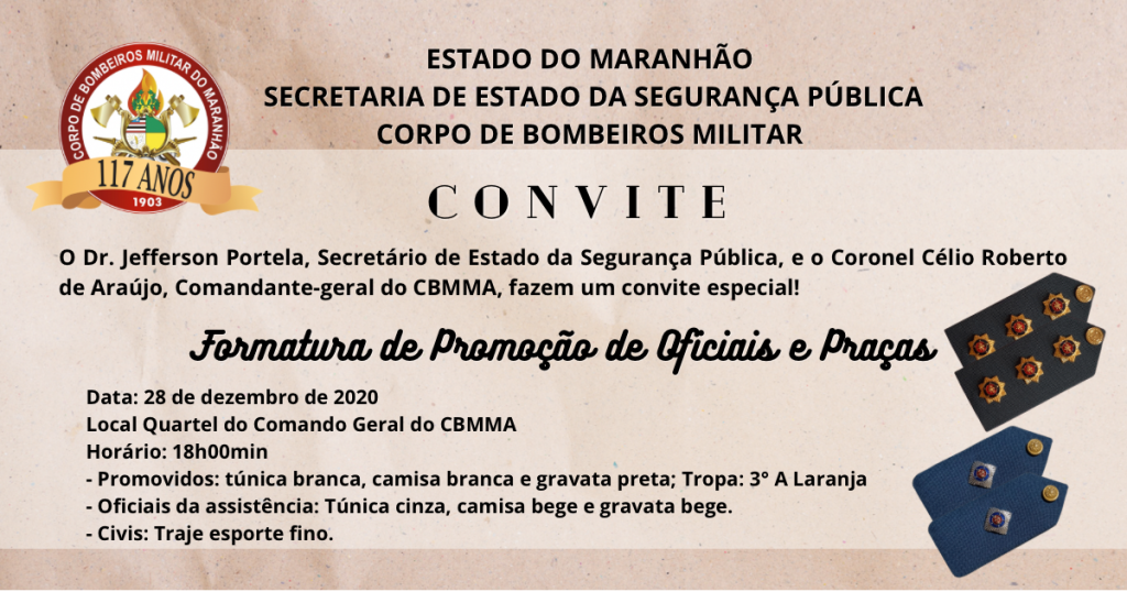 135/2020 – Novo horário – Formatura 28/12/2020 AVISOS Por ASCOM-BM_ Atualizado em 24 de dezembro de 2020 Compartilhar [RETIFICAÇÃO] A FORMATURA DE PROMOÇÃO SERÁ ÀS 18h00min DO DIA 28/12/2020 (SEGUNDA-FEIRA)