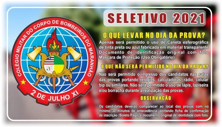 INFORMATIVO – SELETIVO COLÉGIO MILITAR 2 DE JULHO XI NoticiasUncategorized Por admcbmma01 Atualizado em 6 de janeiro de 2021 Compartilhar