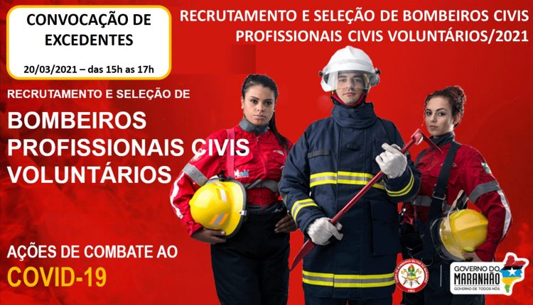 Os Bombeiros Civis excedentes relacionados no arquivo anexo (Região Metropolitana de São Luís-MA), deverão se apresentar no quartel do 1° BBM, para realizar a entrega dos documentos solicitados no item 2.7 da portaria 091/2021/GAB.CMDO/CBMMA, a partir das 15h do dia 20 de março de 2021.
