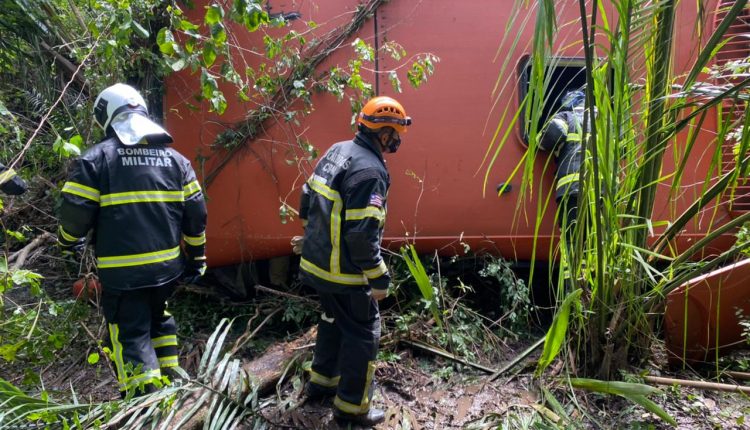 Na manhã desta sexta-feira (29), um ônibus com passageiros que se deslocava até a capital São Luís perdeu o controle na BR-316 e desceu em uma ribanceira.