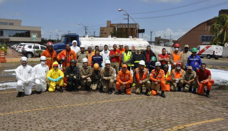 Além da parte teórica, os alunos puderam participar de um simulado na área portuária que retratou um acidente envolvendo um caminhão tanque, transportando produtos químicos. O simulado além da atuação das viaturas e equipamentos do CBMMA, contou com a participação de todos os alunos do curso e com o apoio das empresas parceiras da área portuária que também integraram as ações de emergências, como a Granel Química e a Vale do Rio Doce. O simulado foi assistido por vários profissionais que estavam nas imediações e pelos cadetes do 2º ano do Curso de Formação de Oficiais Bombeiro Militar, que estão cursando a disciplina de Produtos Perigosos. O simulado foi coordenado pelo Capitão QOCBM Almeida.