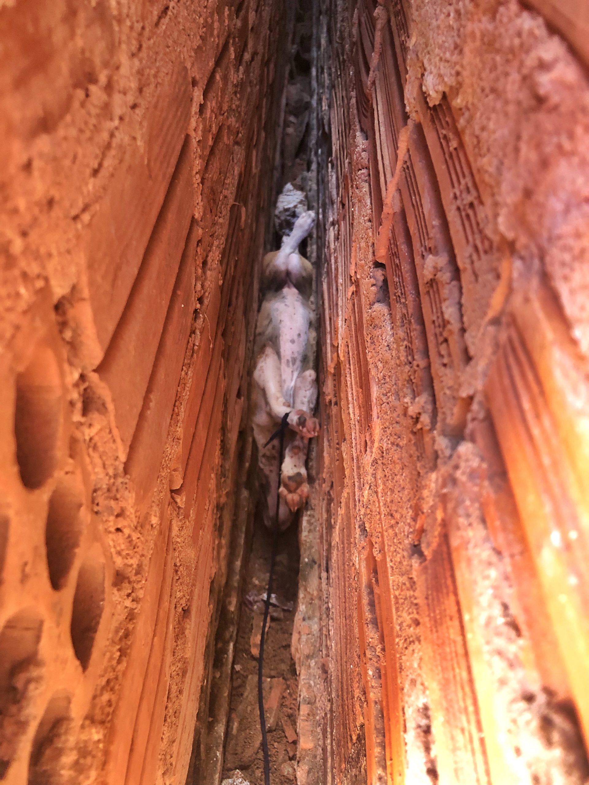 Ao chegar no local, a guarnição se deparou com uma situação bastante delicada, já que a cadela de pequeno porte estava com a cabeça presa em uma parte mais afunilada da fenda. Com bastante cautela, os bombeiros conseguiram fazer o resgate com sucesso, usando técnicas seguras que preservaram a integridade física do animal, sem que fosse necessário danificar as paredes da residência.