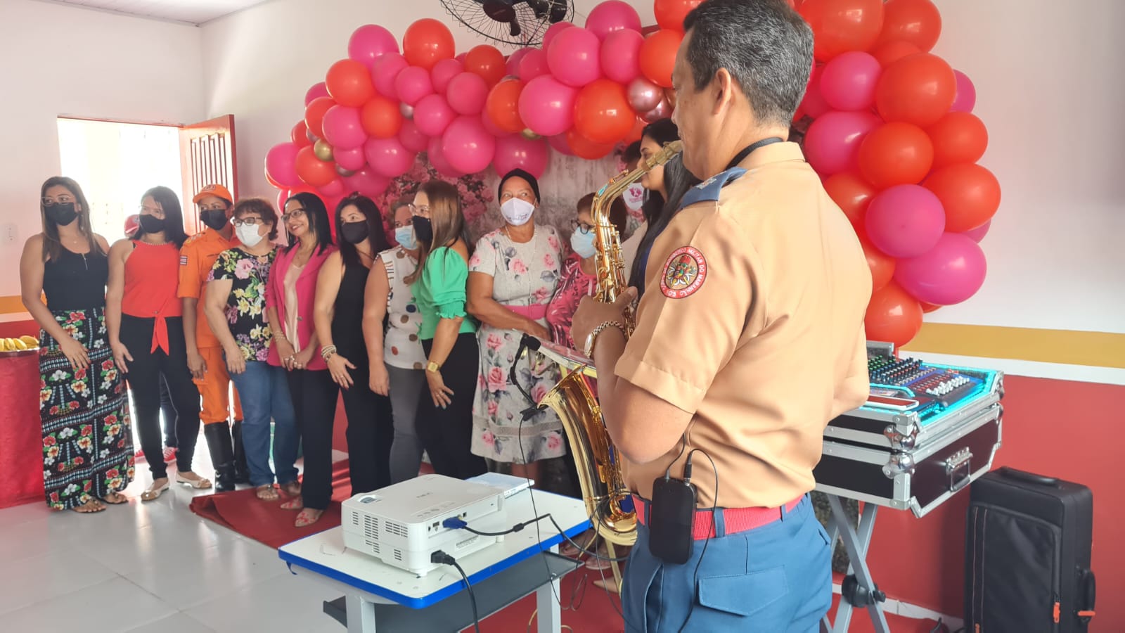 Ao som do saxofonista da Banda de Música, Tenente Caldas, as militares e civis das escolas foram recebidas na manhã festiva.